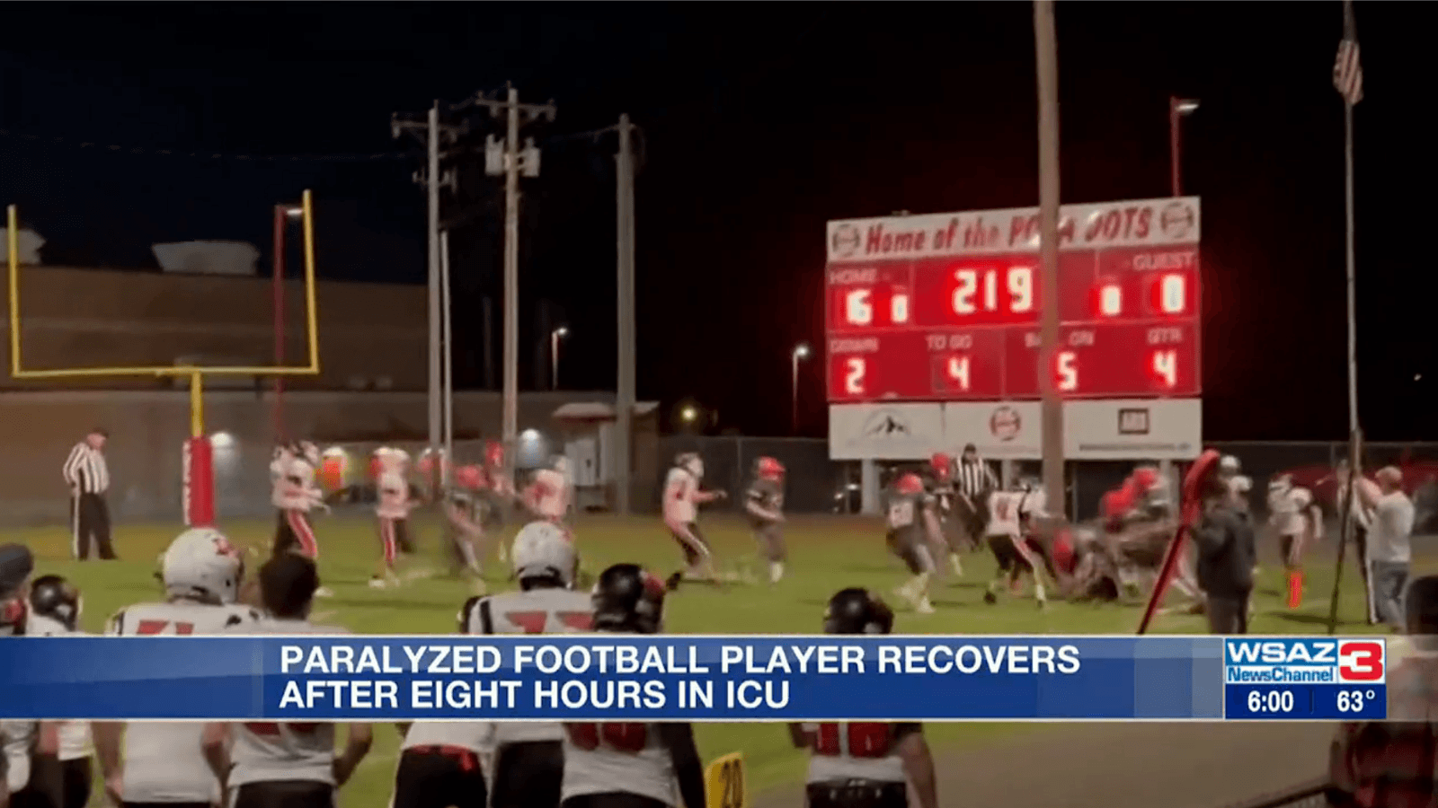 Teen suffers temporary paralysis after hard tackle in football game